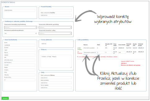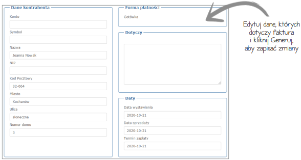 2. Przed utworzeniem faktury istnieje możliwość edycji danych kontrahenta oraz danych