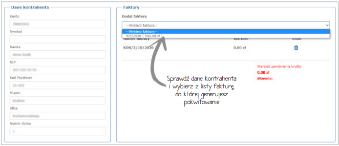 4. Jeżeli płatność dokonana została gotówką wygeneruj z zamówienia pokwitowanie