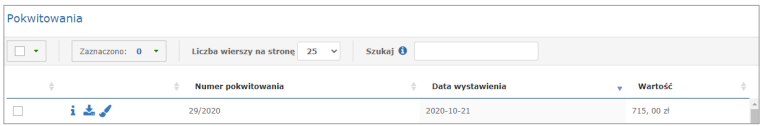 5. Utworzone pokwitowania znajdują się w zakładce Pokwitowania