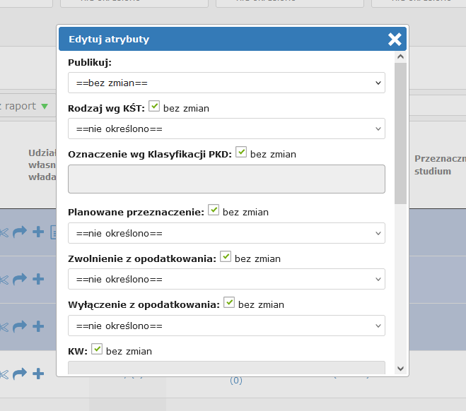 Strona główna » Aplikacja Mienie » Grupowa edycja atrybutów działek