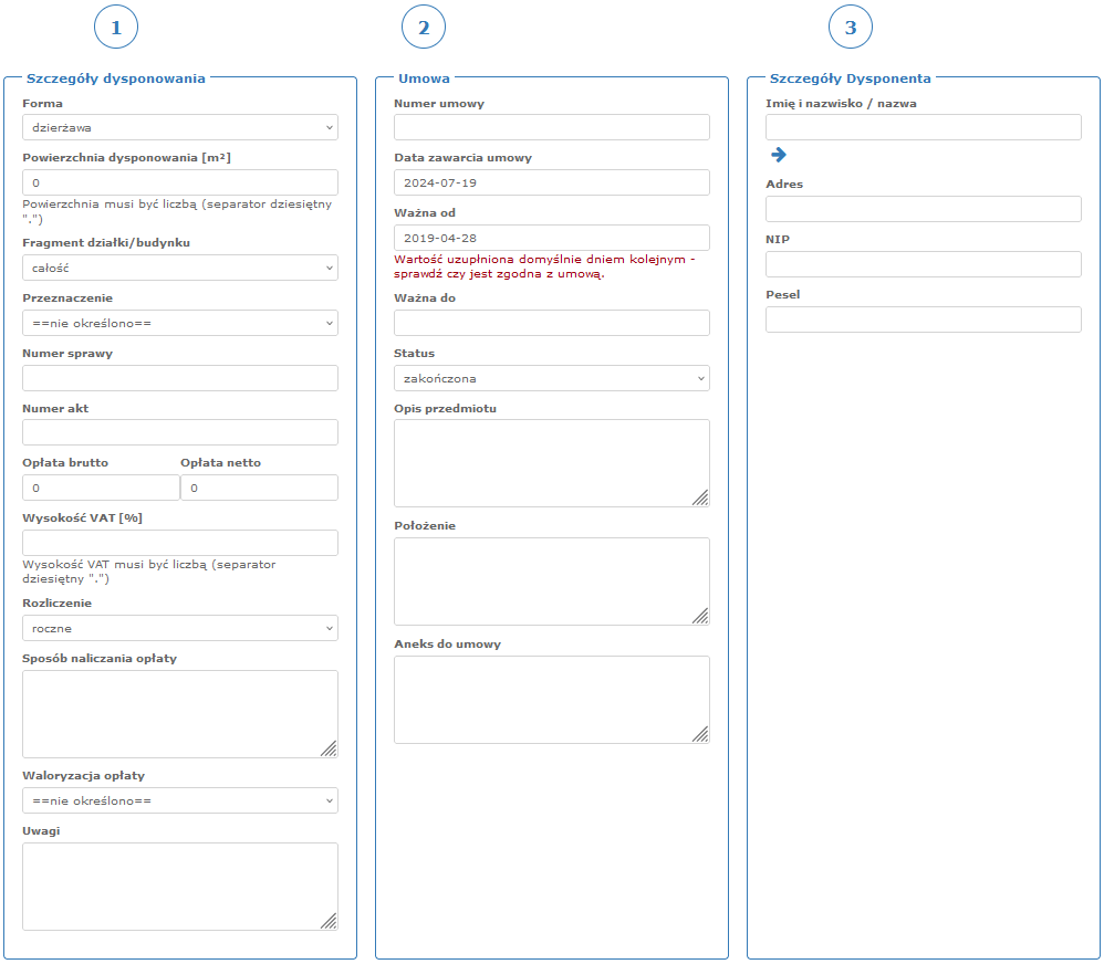 Strona główna » Aplikacja Mienie » Przedłużenie umowy dysponowania