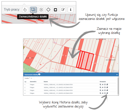1. Zaznacz na mapie działkę, której historię chcesz sprawdzić.